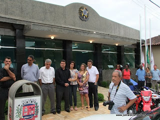 Durante a Solenidade o Prefeito Clerinho entregou 2 motos que irão auxiliar no atendimento do Programa de Saúde da Família e 1 veículo do Conselho Tutelar.