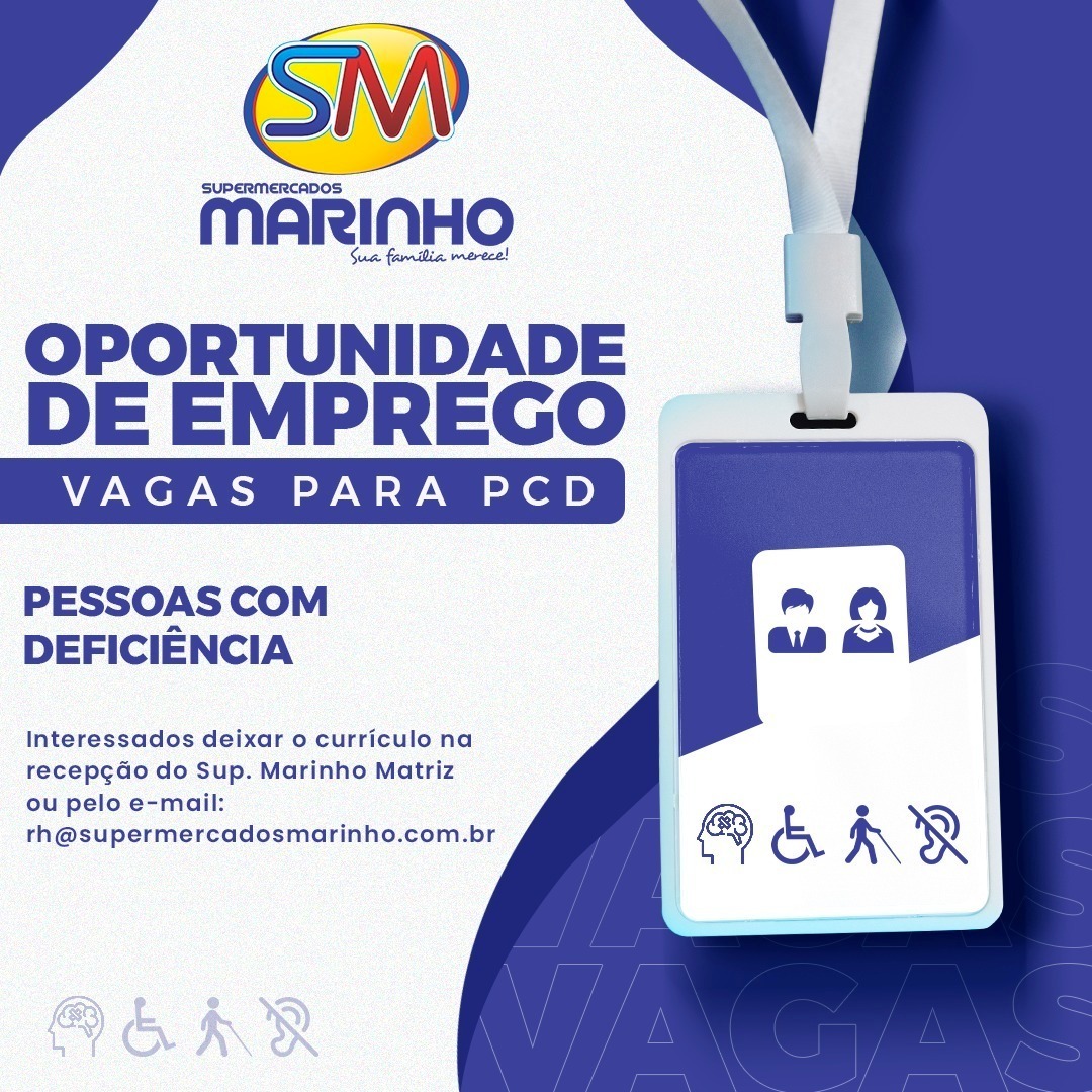 Oportunidade de Emprego. Vagas para PCD nos Supermercados Marinho